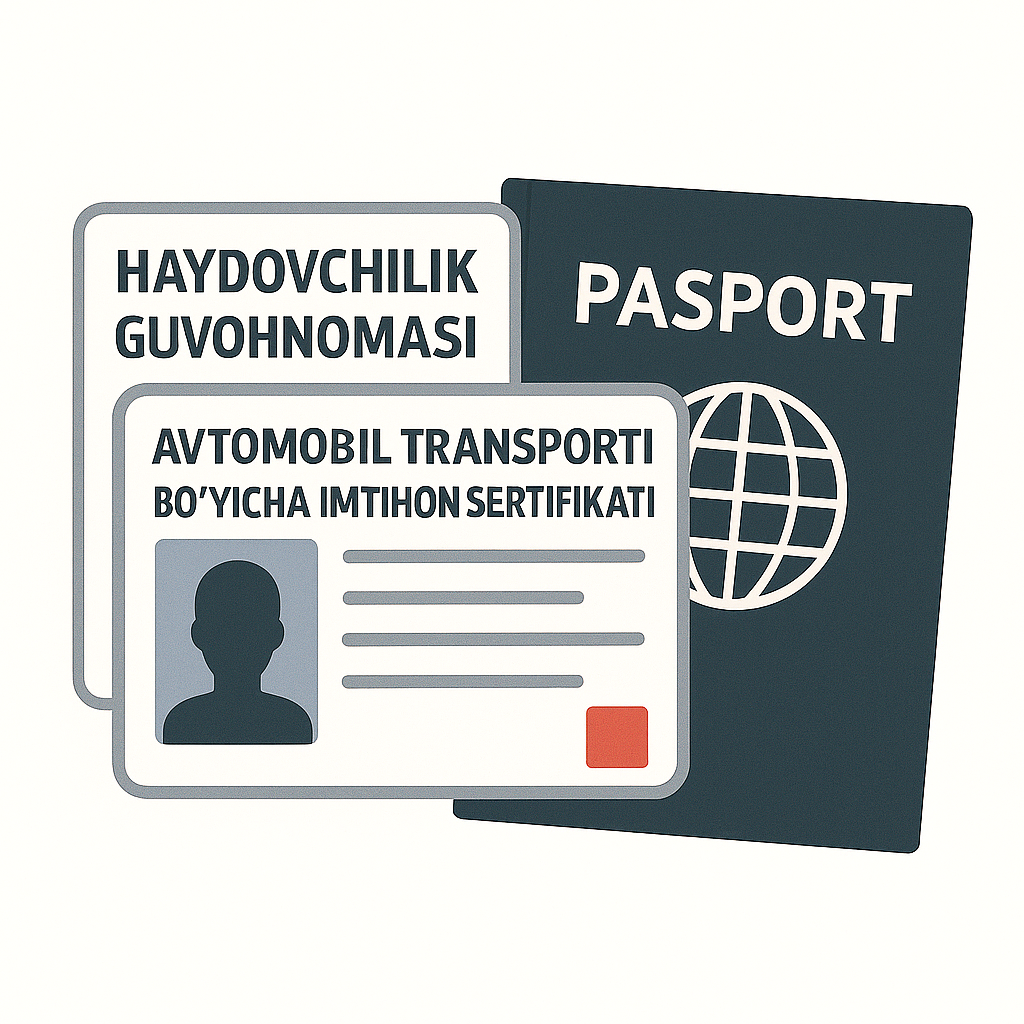 CBT testini bron qilishdan oldin, shaxsni tasdiqlovchi hujjatlar (haydovchilik guvohnomasi va shaxsiy guvohnoma)ni taqdim etish shart.